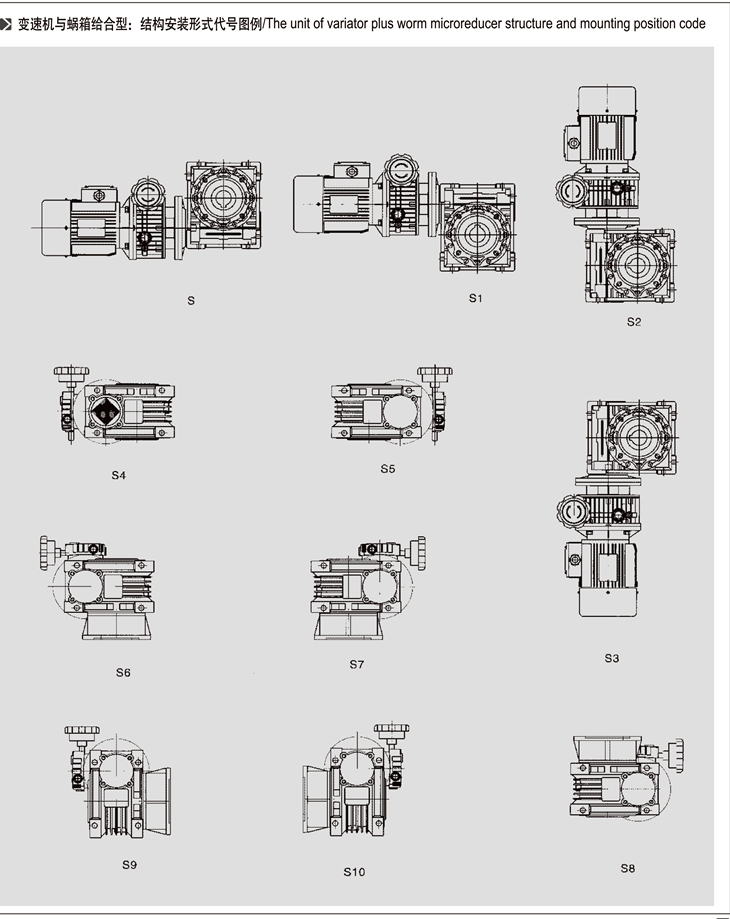 MB-NMRV組合系列無級變速機(jī)是由MB無級變速機(jī)與RV蝸輪減速機(jī)完美組合。