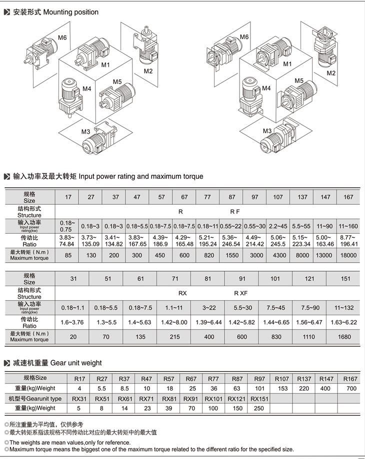 RF:底腳法蘭安裝 RM:法蘭安裝帶加長軸承箱