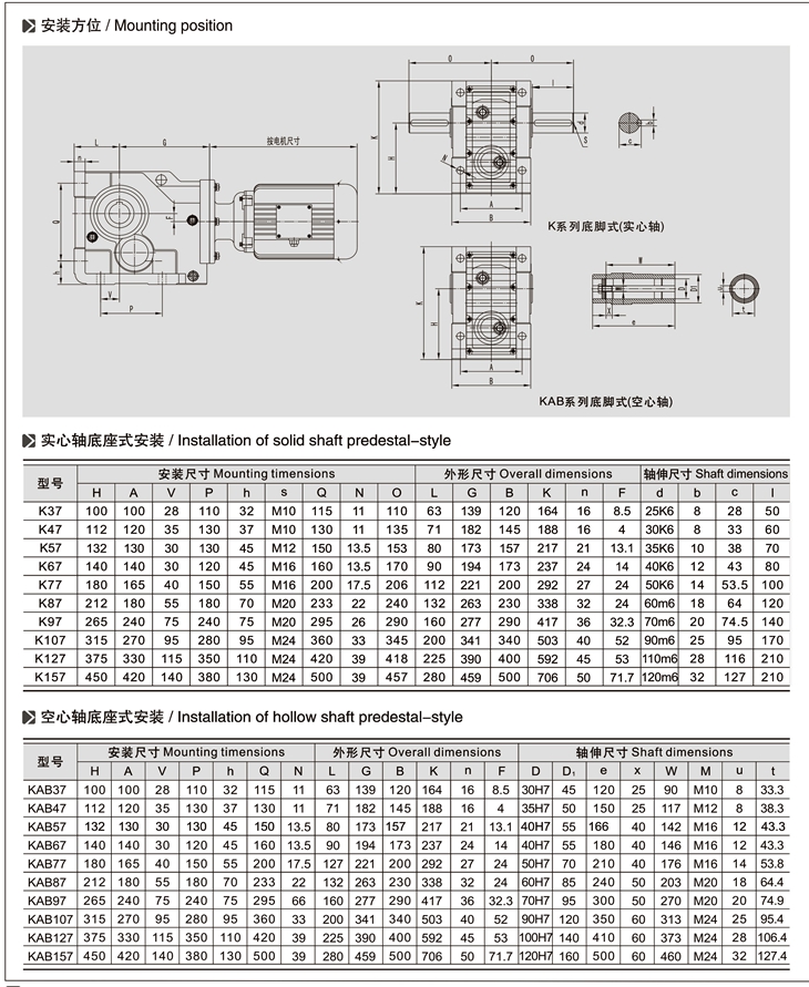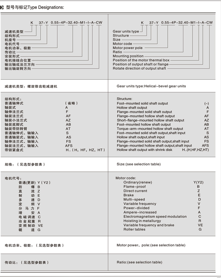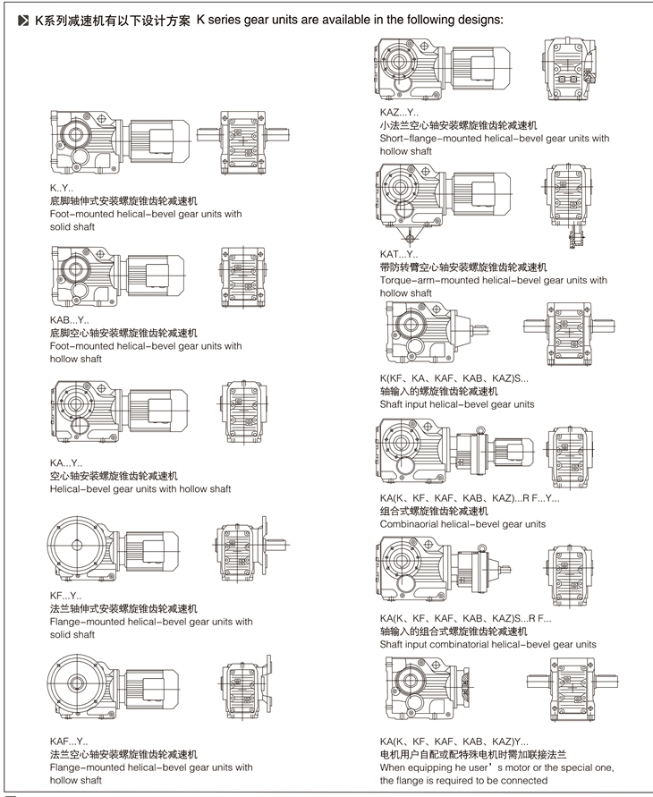 K-軸伸式、底腳安裝;KA-軸裝式聯(lián)接